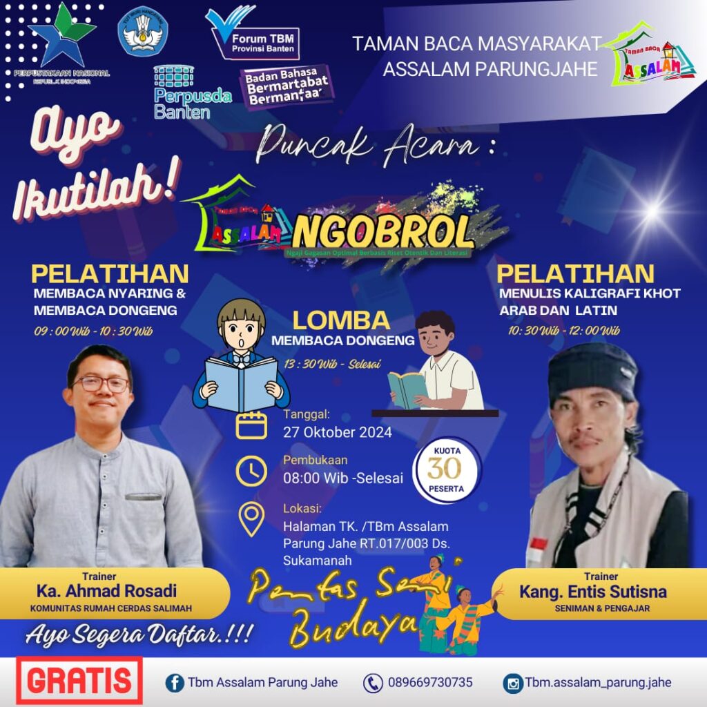 Sabtu : 09.00 Wib s.d Selesai Penguatan Komunitas Literasi di PKBM Assalam Parung Jahe Narasumber : Om Ridwan Manantik PPenguatan Komunitas Literasi di PKBM Assalam Parung Jahe Parung Jahe, 20 Oktober 2024 – PKBM Assalam Parung Jahe kembali menunjukkan komitmennya dalam membangun budaya literasi melalui kegiatan Penguatan Komunitas Literasi yang diselenggarakan di Gedung TK Islam […]