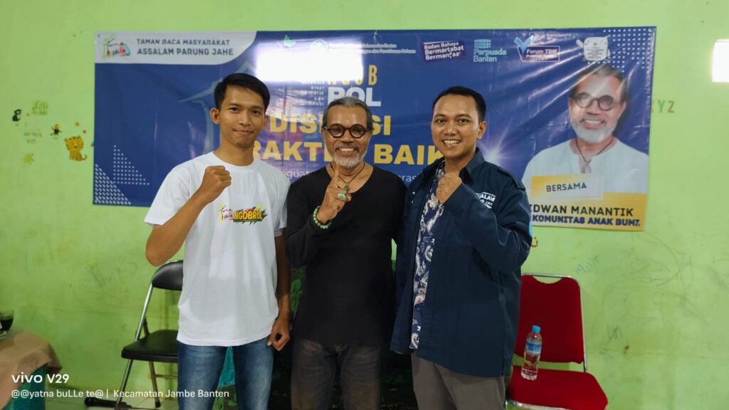 Hadir sebagai narasumber, Om Ridwan Manantik, seorang pegiat literasi yang sudah lama aktif menggerakkan komunitas baca di berbagai daerah. Dalam paparannya, beliau menekankan pentingnya membangun budaya literasi sejak dini dan konsistensi dalam membaca maupun menulis.